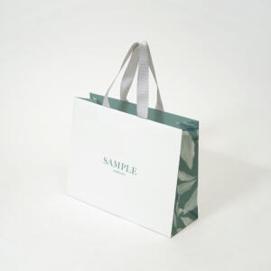 側面にプリントされた葉のパターンが、ナチュラルかつ上品な紙袋 |