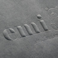色を付けずに紙の質感のままロゴを盛り上げる加工になります。控えめでありなが目を引くデザインで、エレガントな仕上がりになります。