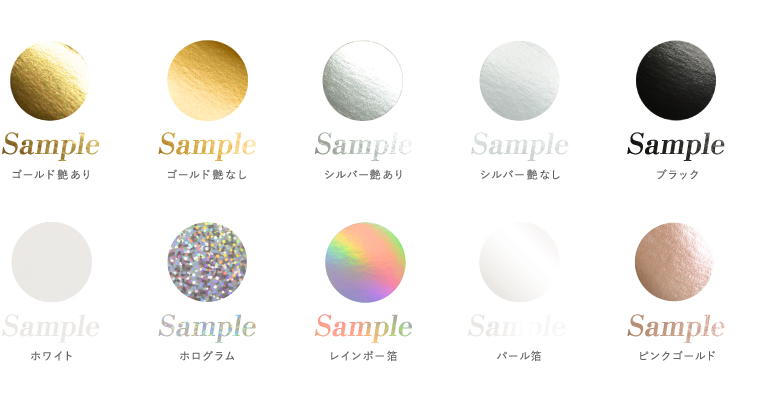 高級感を演出する箔押し加工などデザインイメージに合わせてする箔押し加工などお選びいただけます。