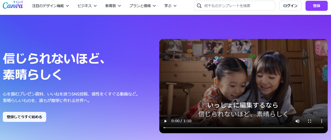 Canvaは、ドラッグ&ドロップでデザインを作成できる使いやすいソフトです。そのため、デザインの経験が浅い方でも安心して使用でき、シンプルでエレガントなデザインを作りたい方におすすめです。