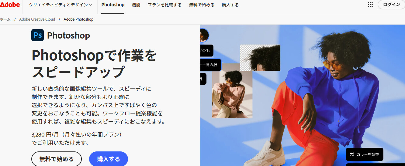 Adobe Photoshopは、デザイン業界で広く使われている画像編集ソフトで、大人っぽいデザインの製作に役立ちます。特に、写真やグラデーションを活かしたデザインを作成したい場合に強力なツールです。