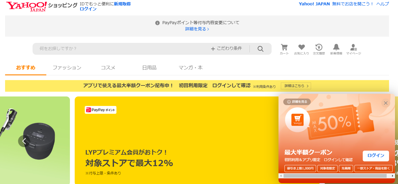 加えて、Yahoo!ショッピングでは、PayPayポイントが溜まりやすいので、PayPayを日常使いしている方におすすめです。
