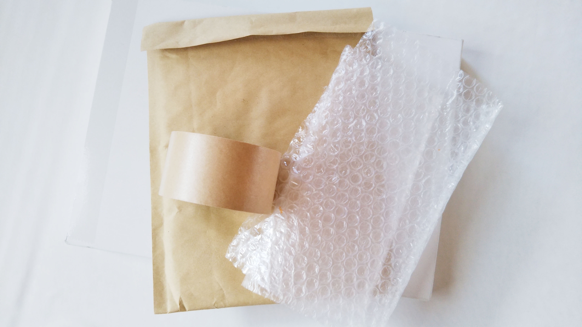 ビニール袋に包んだ荷物を紙袋に入れたら、気泡緩和剤(プチプチ)を入れることも忘れないようにしましょう。紙袋だけでは、衝撃がダイレクトに荷物へ伝わってしまいます。荷物を守るためにも、気泡緩衝材で包んでおきましょう。