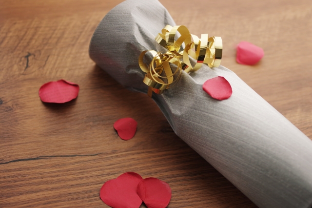 英字新聞を使えば、手軽におしゃれでスタイリッシュな印象を与えられます。英字新聞のデザインはモノトーンでシンプルなため、贈る相手やシーンを問わず便利です。また、安価で手に入れやすいのも魅力です。ボトル全体を英字新聞で包み、サテンなどのリボンを結べば洗練された印象になります。