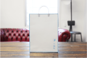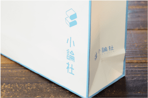 明るいブルーと白のシンプルな配色は出版社の紙袋としてしっかりさまになっています。