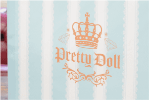 印刷されたレースの模様やダイヤなどを用いたロゴは可愛らしく仕上がっています。