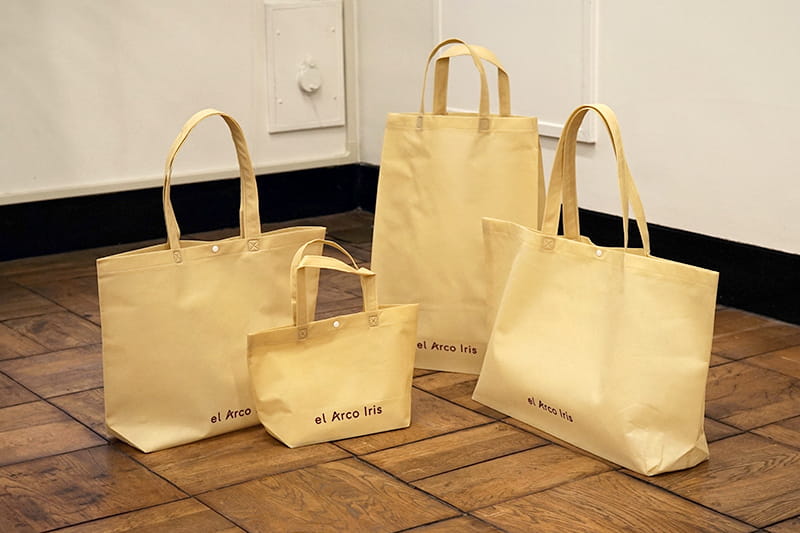 サイズは合計4サイズを作りました。不織布バッグは繰り返し使える素材でサスティナブルにも配慮した作りです。