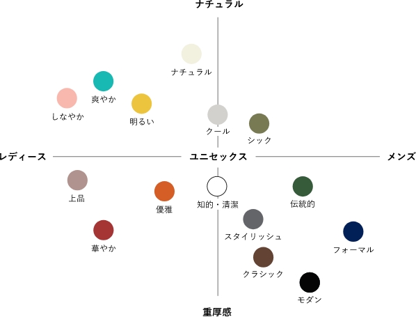 このイメージスケールを応用し、アパレル紙袋の印刷色15色をマッピング。