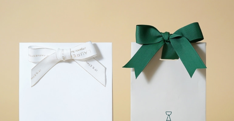 バッグ。リボンやシールを飾るとさらに高級感ある特別な