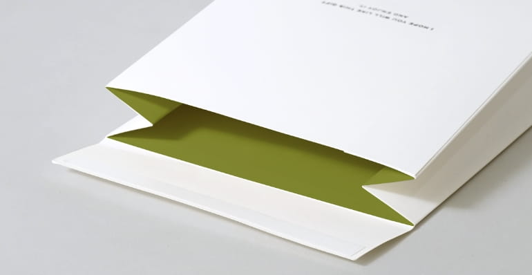 プレゼント用のパッケージとして人気急上昇中の封筒型のプレゼントバッグ。封筒は機械で製造をされることが多いですが、ベリービーでは手加工で製造するので、サイズや素材・加工の制約を受けずに高級感のあるパッケージをご注文いただけます。
