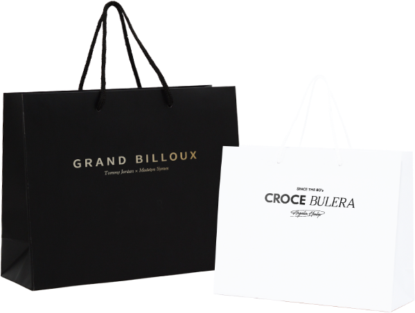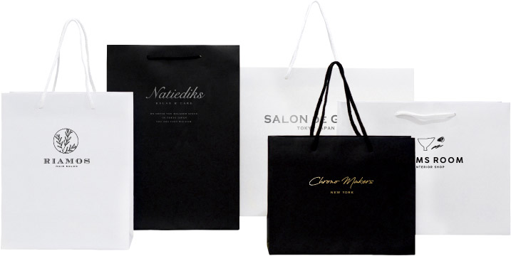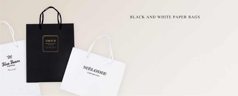 業種や性別を問わず常に人気のブラックとホワイトの紙袋です。サイズ・ロゴのカラーを選ぶだけで、高級感のあるオリジナル紙袋が仕上がります。