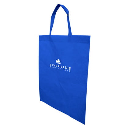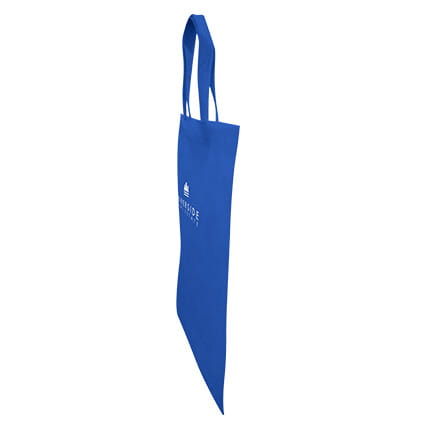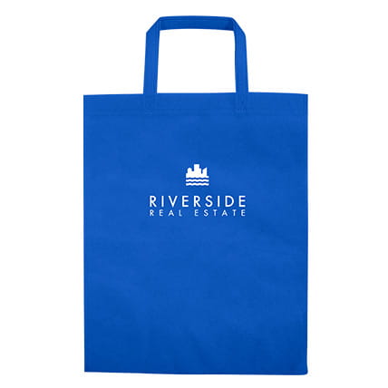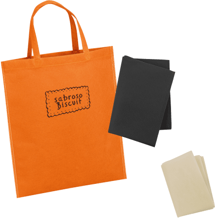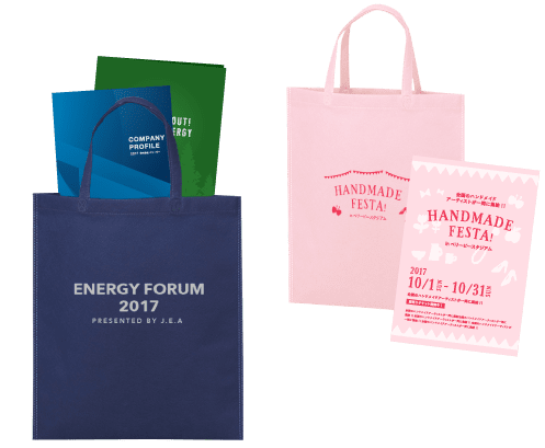マチ無しでかさばらないので資料を持ち帰っていただくのに最適な不織布バッグです。ハンドルがついてしっかりしているのでリユースも期待できます。