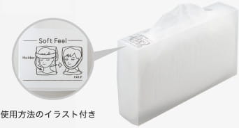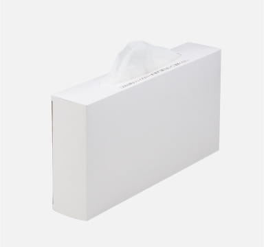 ポリ袋外装のミシン目をちぎるだけでそのまま箱にセットできます。詰め替え用としてご利用いただけます。
