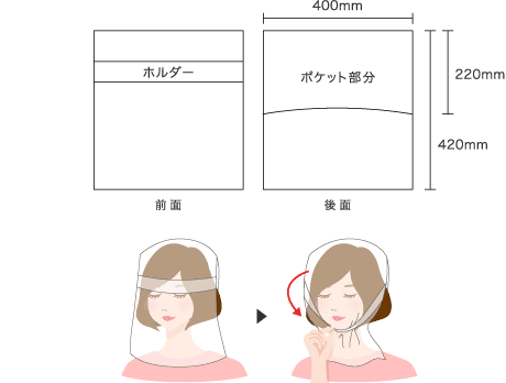 フェイスカバー前面にあごにかけるホルダーが付いているのでまくれ上がりを防ぎます。より安心してご試着していただけます。