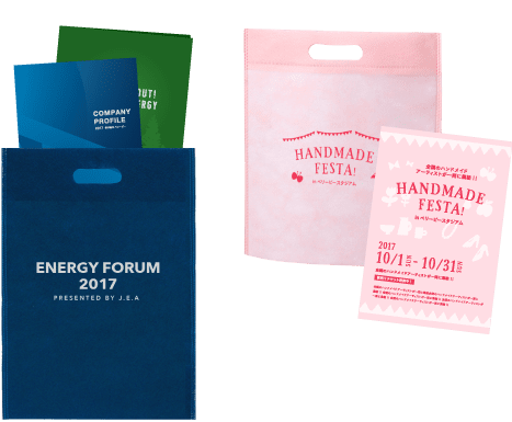 資料をスマートに収納でき、持ち運びしやすい不織布バッグ。さらにコストパフォーマンスも最高な、イベントに最適なバッグです。