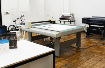 大阪ショールームの1階上の5Fには、大型プリンターやカッティングマシーンを備えた紙袋アトリエがあり、ここでスタッフがが簡易製袋見本を作成しています!
