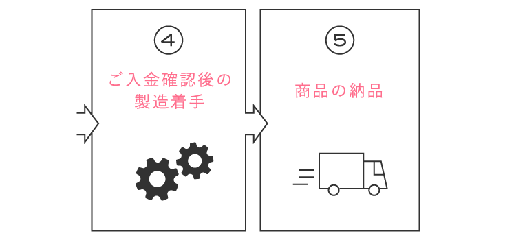 オリジナル商品は受注生産のため、仕様やご注文枚数、工場の繁忙期によって製造期間が異なります。