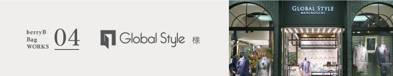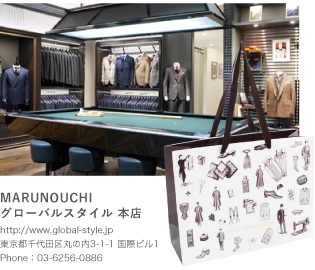 Global Style様は老舗生地問屋直営のネットワークを活かし豊富な生地・素材・価格からスーツをお仕立てできるオーダースーツショップです。シャツ、シューズ、ネクタイなど小物商品も合わせたトータルコーディネートも可能です。初めてスーツオーダーされる方にも楽しんでご注文いただきたいという想いから“ENJOY ORDER”をテーマに、「堅苦しい」「高価」「面倒」といった従来のオーダースーツのイメージを覆します。現在、東京・大阪・名古屋・福岡に14店舗を構えています。(17年11月現在)