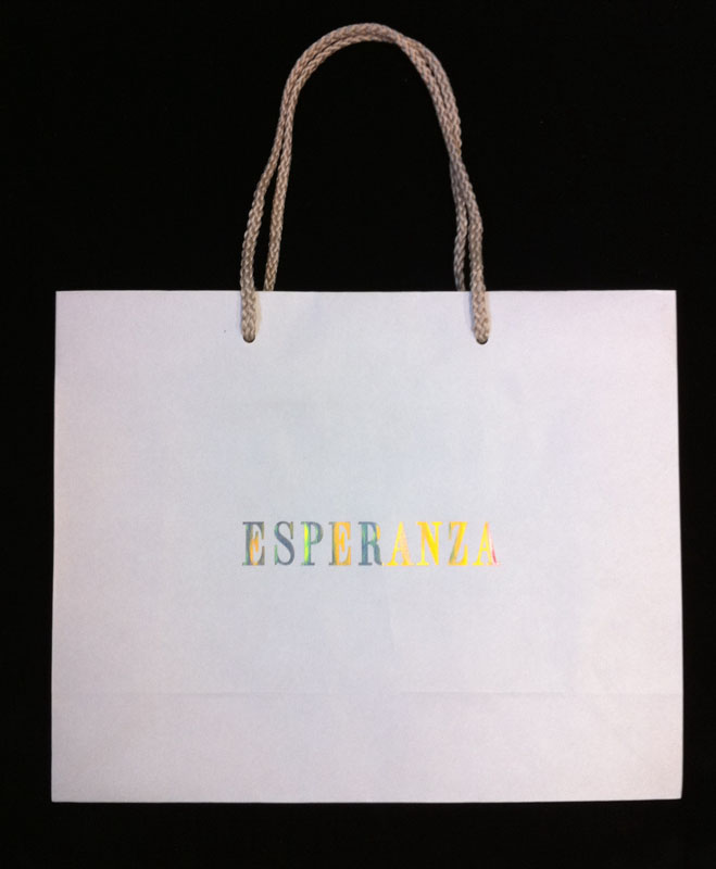 こちらは上の紙袋とは対照的なレインボー箔を使ったキラキラ紙袋。