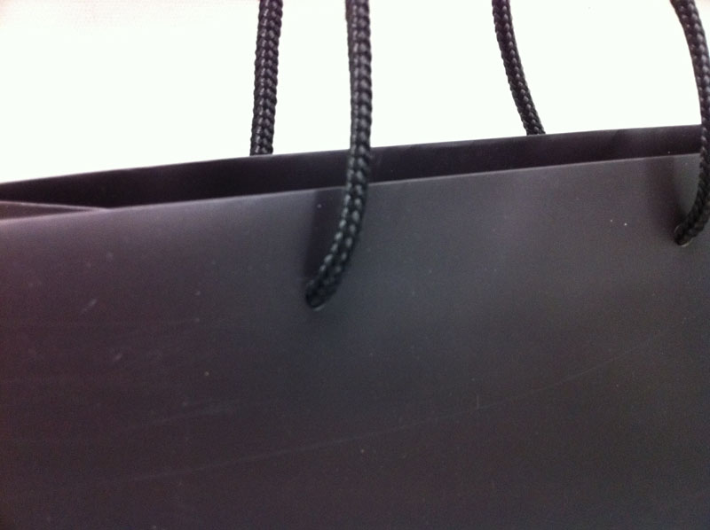 「黒」がかっこいいオリジナル紙袋2011年07月27日 こんにちはベリービーの芦谷です。 今日はとっても「黒」がかっこいいオリジナル紙袋をご紹介致します。 この紙袋がかっこいいのは徹底した「黒」使いです。 全体にマットな「黒」をベースにしながら 箔押し部分にだけ光沢のある「黒」の箔同時肉付けを使用しているところが かっこよさに理由ですね。 そのおかげで かっこいい大人の高級感が演出されています。 シンプルながらとても素敵な紙袋です。
