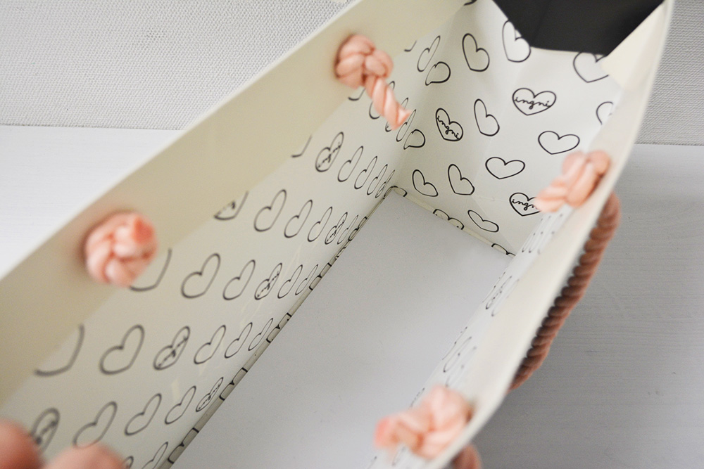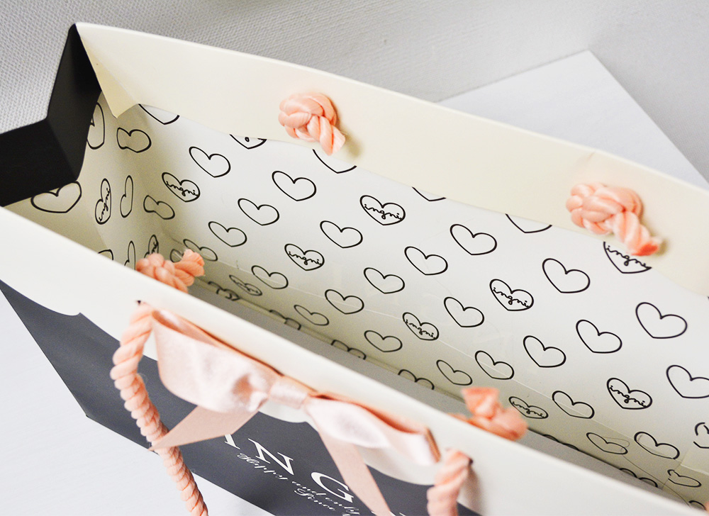 そして、内面にはハートの模様が印刷されていて、どこまでもかわいらしい紙袋です。