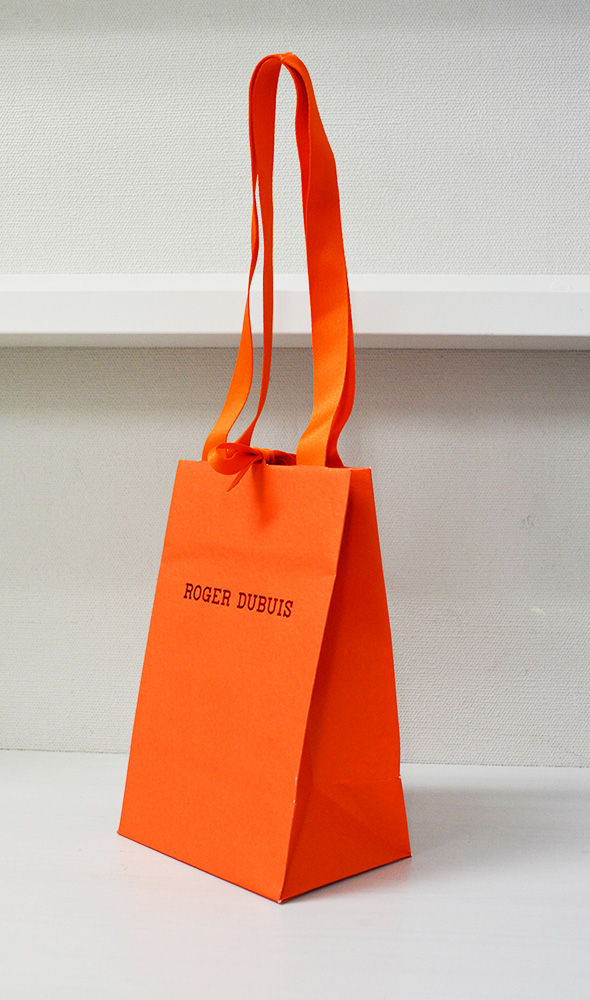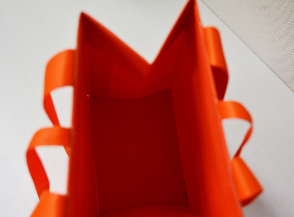 今日ご紹介するのは、目にも鮮やかな全身オレンジ色の紙袋です。