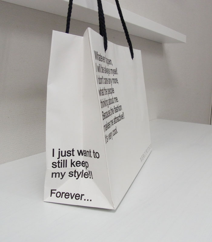 クールなタイポグラフィーが素敵なオリジナル紙袋の印刷2011年08月08日 こんにちはベリービーの芦谷です。 毎日、暑い日が続きますね。 そんな暑い日にも負けずに 今日も素敵な紙袋をご紹介致します。 今日、ご紹介するのは クールなタイポグラフィーがかっこいい紙袋です。 手提げ紐を長い目にとられた 大人っぽいデザインの紙袋です。 再度にもカッコ良くデザインされたタイポグラフィが印刷されています。 こんなにクールなデザインなのに クラフト再生紙を使われているのが エコを考えた現代性ですね。 カッコイイだけではなく 環境にも配慮したデザインがこれからの時代のテーマですね。