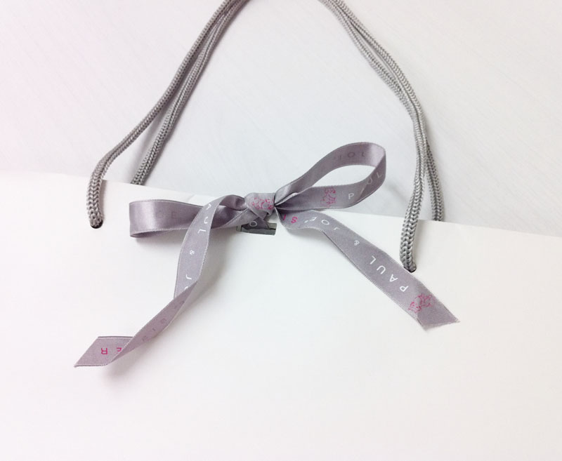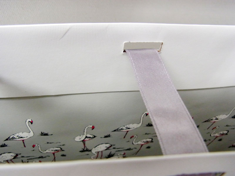 女性に大人気のオリジナル紙袋デザイン2011年08月09日 こんにちはベリービーの芦谷です。 今日はとっても女性に大人気ブランドの これまた、女性に大人気紙袋をご紹介します。 かわいい猫の印刷が特徴的です。 そして、なんといっても女性のハートを掴むのは 流行のリボンをかわいくあしらっているところ!! そして、紙袋の内側もすごく凝っていて かわいいフラミンゴのプリントがされています。 「微に入り細に入り」とても素敵なデザインの紙袋ですね。