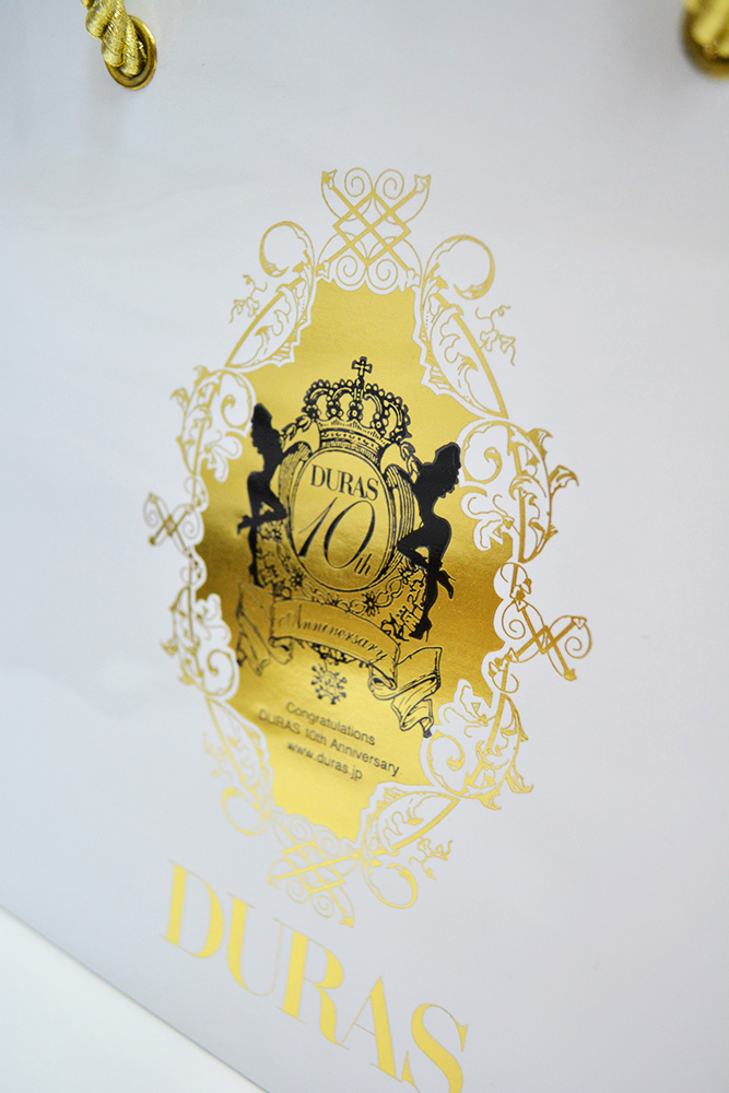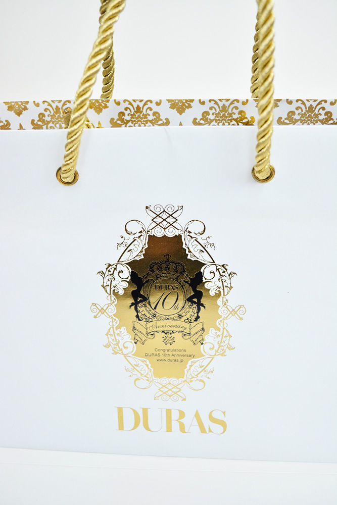 お店の10周年記念に作られた紙袋のようなので、ここまでゴールドでゴージャスにすると記念感がありますね。