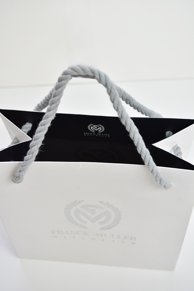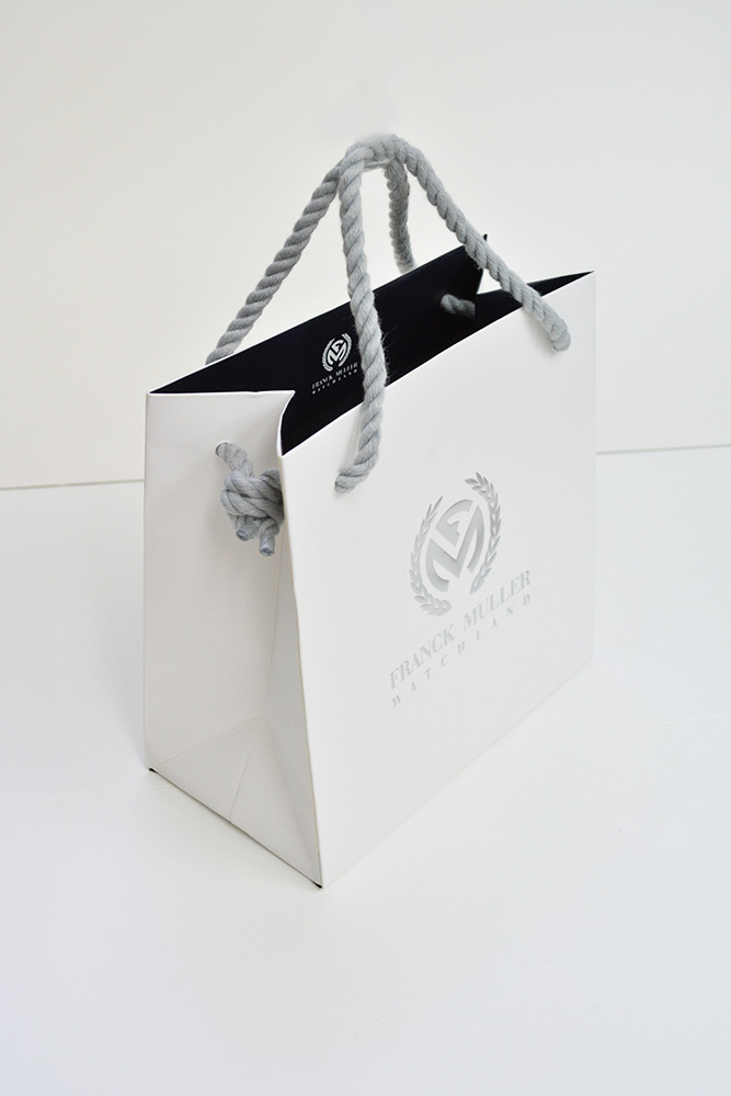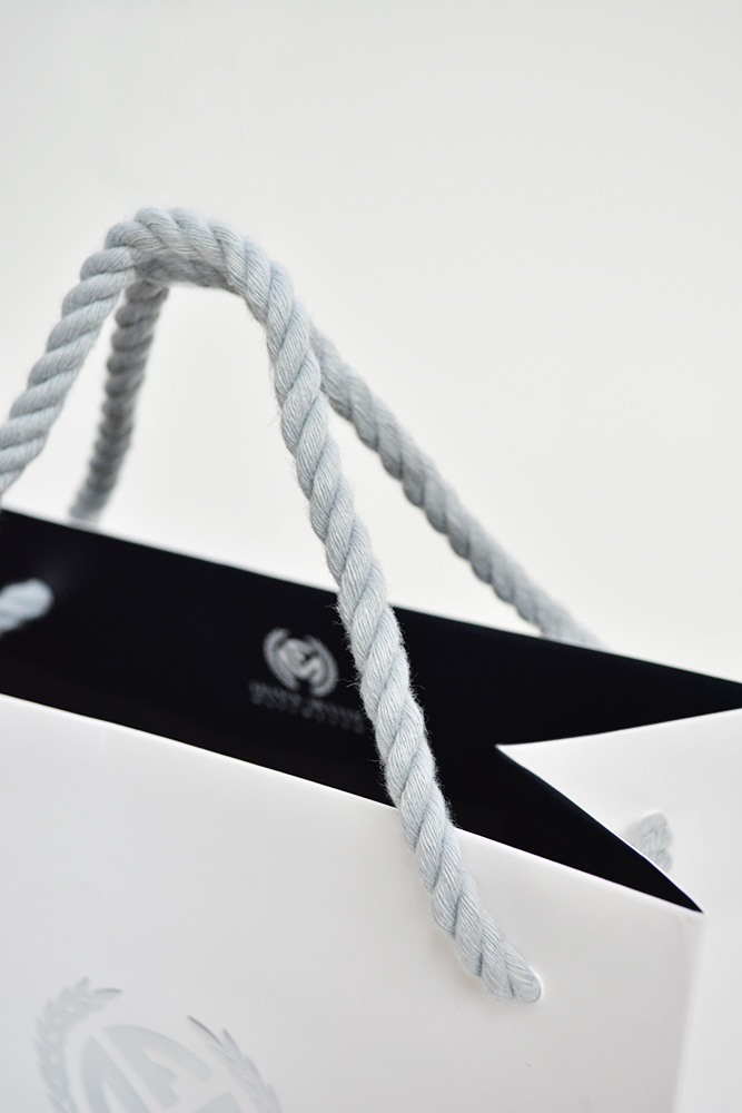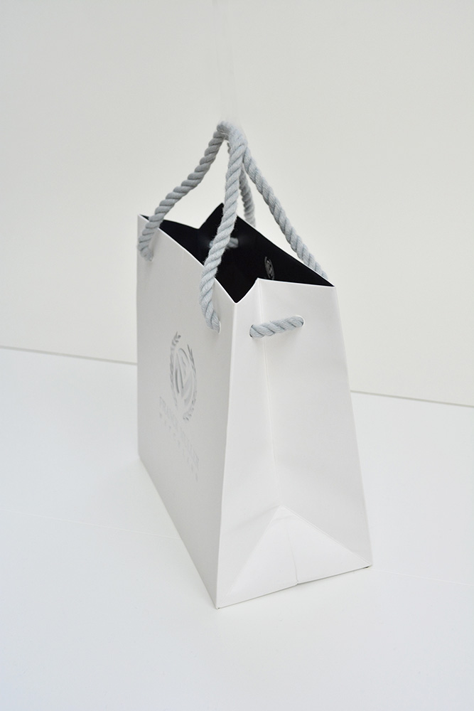 真っ白のコート紙に銀色のロゴと銀色のハンドルがとても綺麗です。
