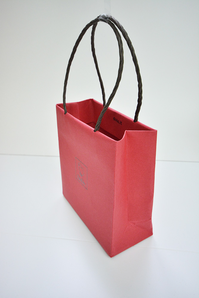 厚手の赤色のクラフト風の紙で手触りも優しい感じの紙袋です。