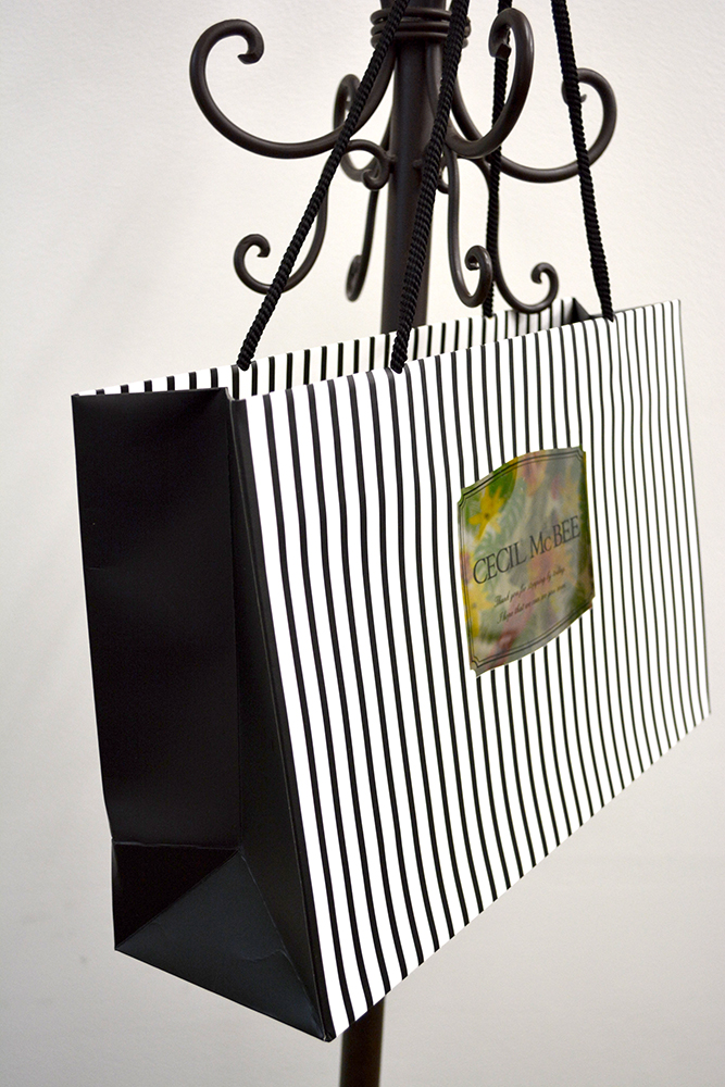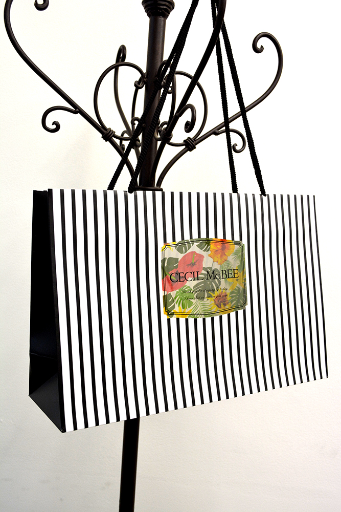 ただのモードじゃ終われない!?ちらりと見える柄が印象的な紙袋