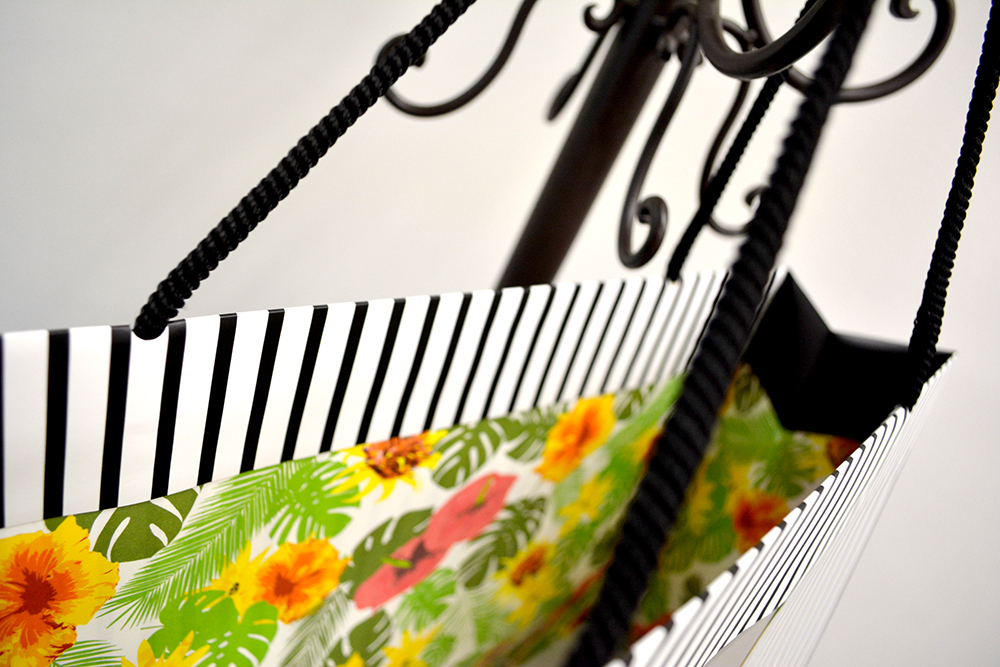 裏地にボタニカル柄を全面に印刷し小窓からのチラ見せ!