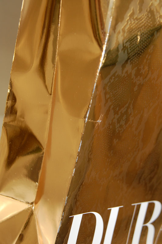 見るからに挑戦的なゴールドが素敵な紙袋。
