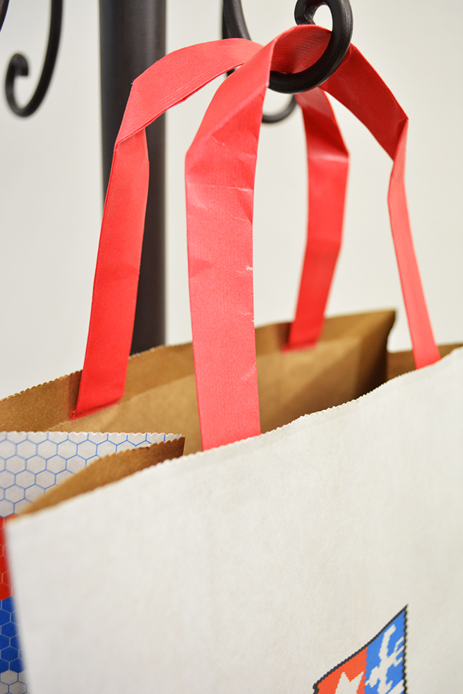今日ご紹介する紙袋は、ブロックで作られたようなかわいいロゴが印象的な雑貨屋さんの紙袋です。