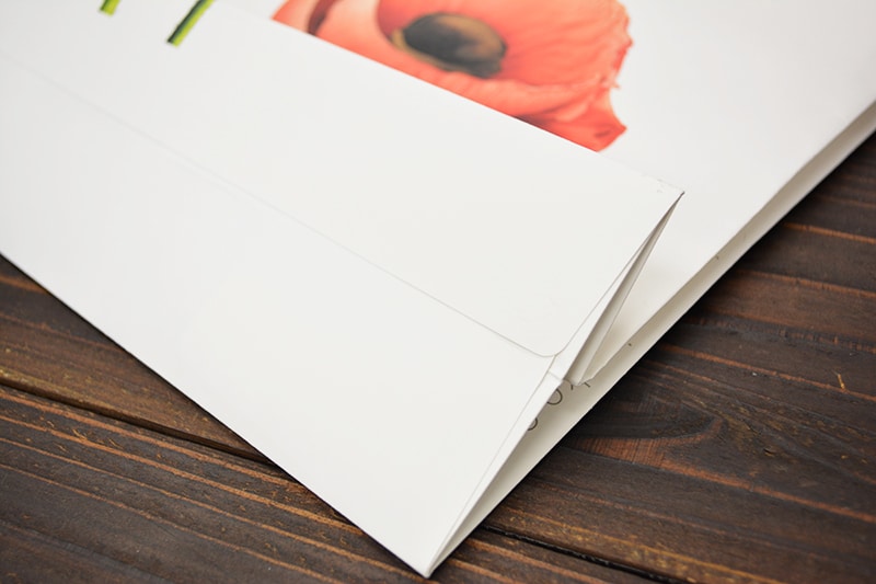 通常紙袋はどちらかの面に紙袋折った際の折り線が入ります。