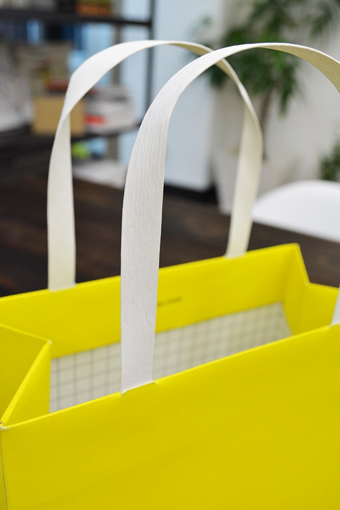 ハンドルは白の紙バンドです。あえてナチュラル寄りな紙バンドを使うことで