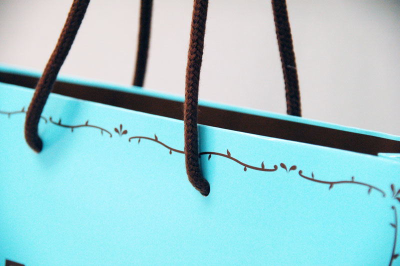 キレイな色の組み合わせのオリジナル紙袋印刷2011年09月09日 こんにちはベリービーの芦谷です。 今日は私の好きな色の組み合わせの紙袋をご紹介致します。 私はターコイズブルーと茶色がとっても好きです。 だから、この紙袋の組み合わせはとってもお気に入りのカラーバランスです。 使われているのはなんの変哲もないアクリルスピンドルですが この紙袋との組み合わせによって とても素敵な素材に感じさせられます。 茶色く印刷されたロゴマークはかわいく浮き出し加工がなされています。 とっても普通っぽい仕様の紙袋ですが 色使い一つで素敵な紙袋になるものですね。