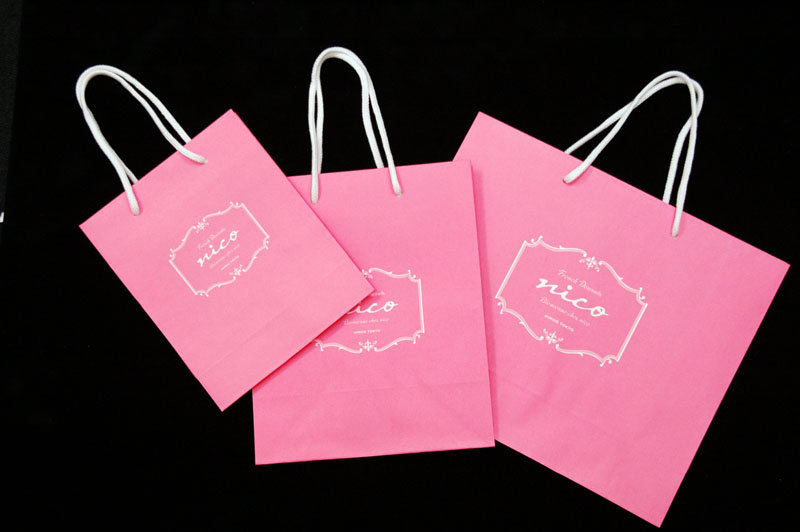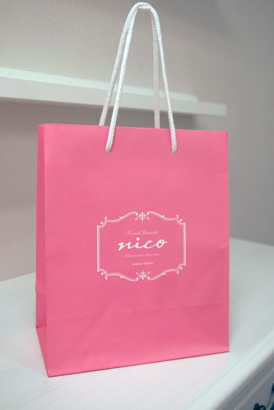 かわいいドーナッツショップの紙袋が完成しました。2011年09月12日 こんにちはベリービーの芦谷です。 今日は昨日納品させていただきました 広尾にあるドーナッツショップの紙袋をご紹介させていただきます。 かわいいピンク色をテーマカラーにした フレンチテイストのドーナッツショップです。 ロゴは少しレトロなテイストでデザインされています。 素材は晒しクラフトで表面にニス引きがされています。 手提げ部分はアクリルスピンドルという贅沢な作りです。 3種類のサイズを納品しました。 この紙袋たちが活躍している姿を また、東京に行ったときにお目に掛かりたいですね!!