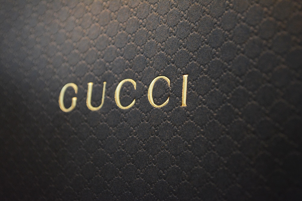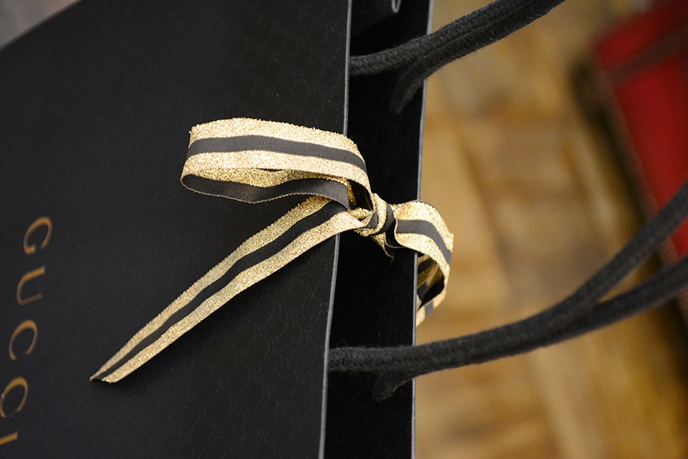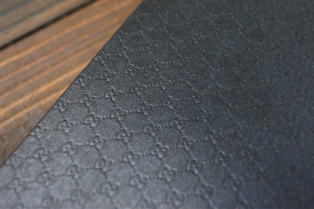 紙袋の全面にブランドロゴがエンボス加工で施されています。