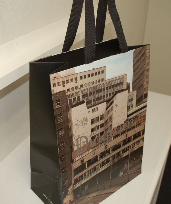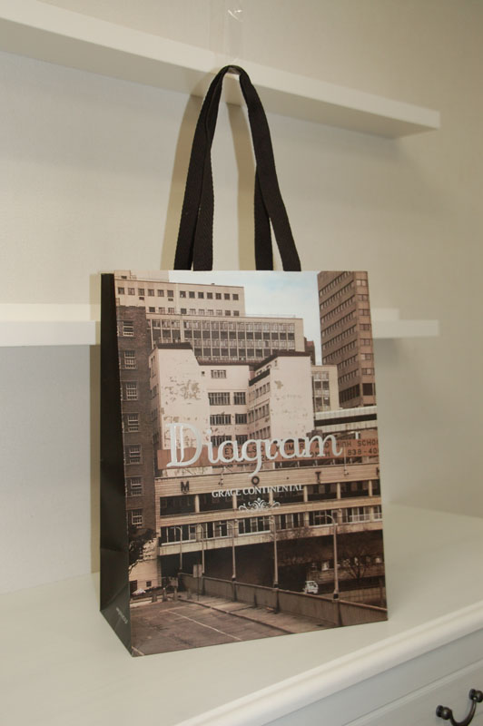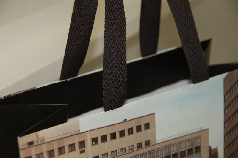 かっこいい写真が印刷されたオリジナル紙袋2011年09月14日 こんにちはベリービーの芦谷です。 今日は私の大好きなブランドのかっこいい紙袋をご紹介致します。 紙袋全面に海外の街並みが印刷されています。 ヨーロッパの都会なんでしょうか? とてもかっこいい写真ですね。 その画像にシルバーの箔押しでロゴマークが印刷されています。 サイドはシャープに黒ベタ一色。 まるで写真のフレームみたいです。 手提げ紐は黒い平紐を使っています。 クリエイティブな雰囲気満載の紙袋です。 ちょっとアート作品のようで 手にした人もうれしいでしょうね。