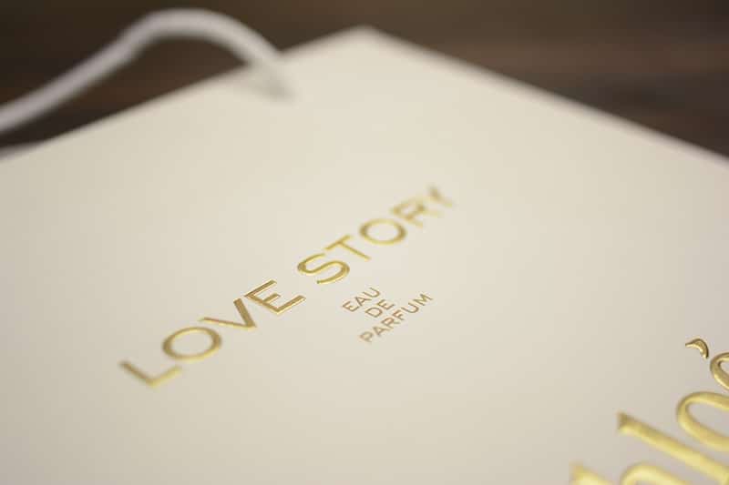 そしてよく見ると見るとロゴと商品名のLOVE STORYの文字は浮き出しの箔押し加工、