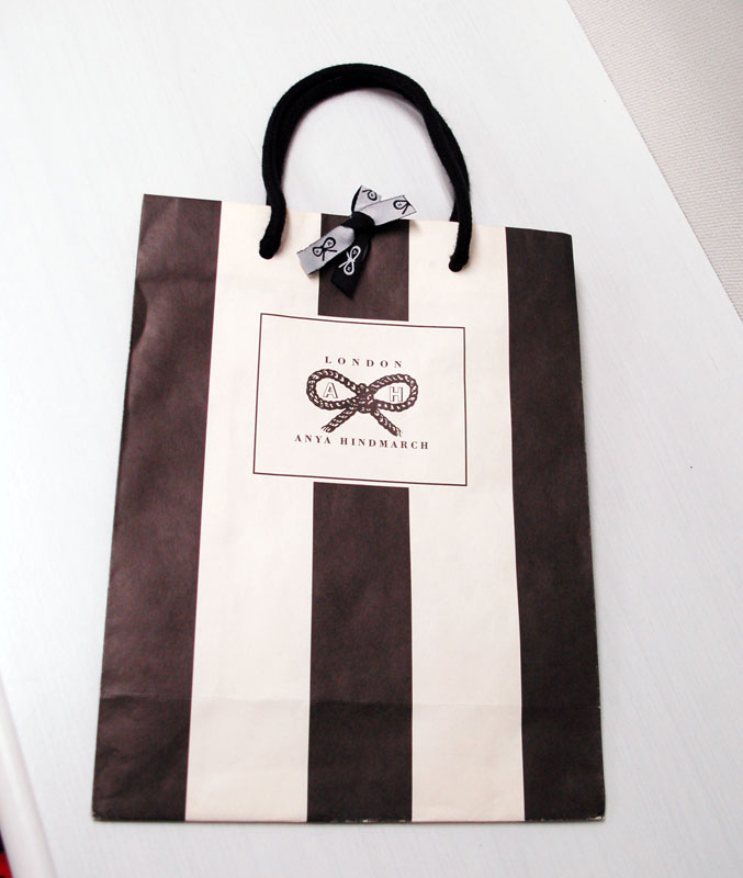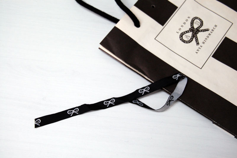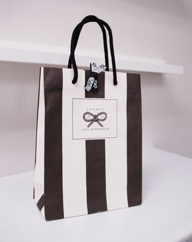 またもや“シマシマ”の素敵なオリジナル紙袋2011年09月16日 こんにちはベリービーの芦谷です。 今日もシマシマの素敵な紙袋をご紹介します。 女性に大人気のイギリスのブランド「アヤ ハインドマーチ」の紙袋です。 近頃の紙袋の流行は やはり口をとめる“リボン”ですね。 多くのブランドがこの手の仕様を採用しています。 ちょっとリボンがあるだけで とってもキュートになりますね。 リボンというのは永遠に女心をつかむアイテムなんでしょうか。