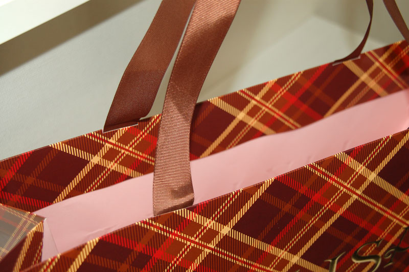 台形がかわいいオリジナル紙袋の印刷2011年09月21日 こんにちはベリービーの芦谷です。 今日は台形のかわいいオリジナル紙袋をご紹介致します。 若い女性じ大人気ブランドの紙袋です。 このブランドの紙袋はいつも凝っていますね。 カゴバッグのような台形がとってもかわいいです。 手提げ紐にはキュートなリボンが使われています。 本当に近頃、リボン使いが流行っていますね。 ロゴはぷっくらとかわいい浮きだしの箔押し加工。 内側にはかわいいピンク色が印刷され、 底ボールのは定番処理のアドレスがプリントされています。 とっても大切にしておきたくなる紙袋ですね。