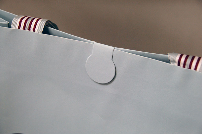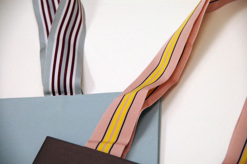 おそらく、紙袋のデザインに合わせて特注したリボンでしょう。