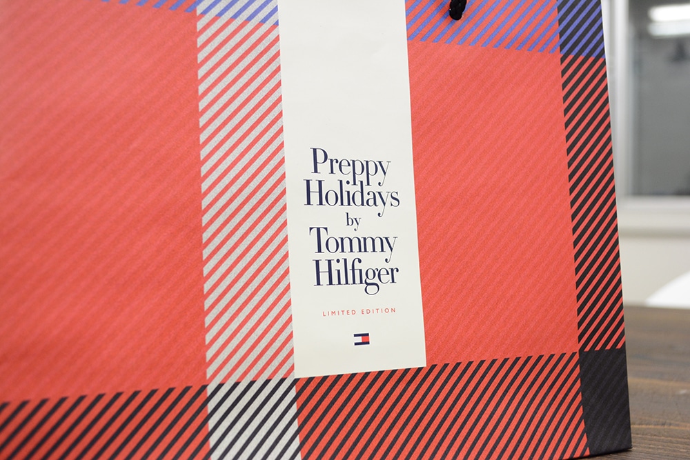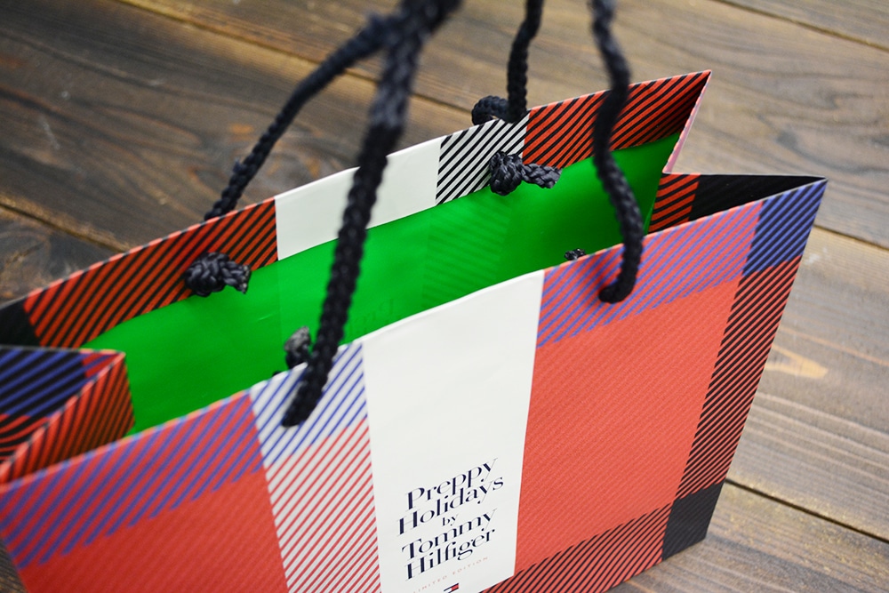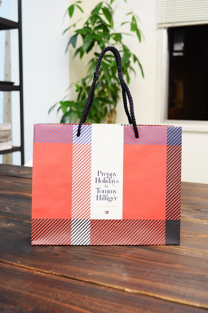 この紙袋もプレッピースタイルの象徴ともいれるチェック柄のデザインになています。