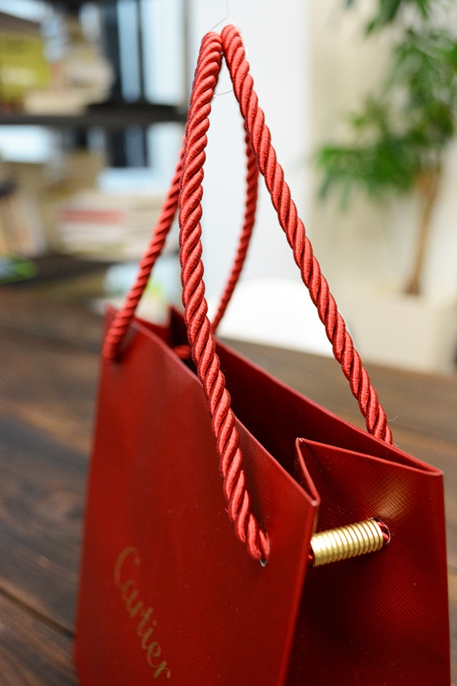 今日ご紹介するのは、美しいワインレッドが綺麗なハイブランドの紙袋です。