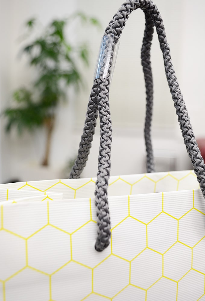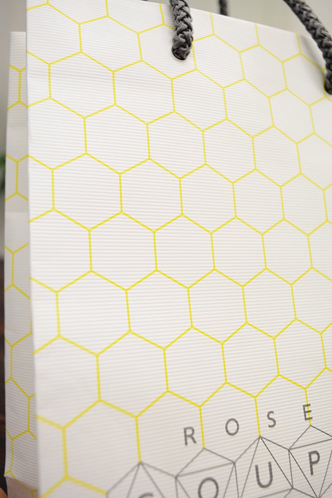 今日ご紹介する紙袋は、黄色のハニカム柄がかわいい