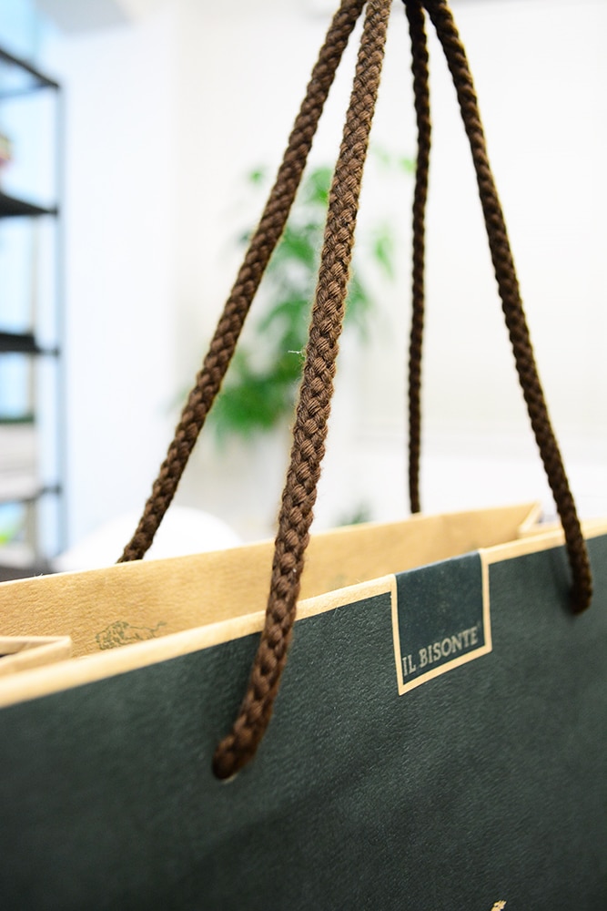 今日ご紹介するのは、主にバッグや皮製品を扱う「おしゃれな大人」に人気のブランドの紙袋です。
