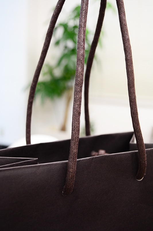 ダークブラウンのクラフト紙ですが厚く、しっかりした手触りです。